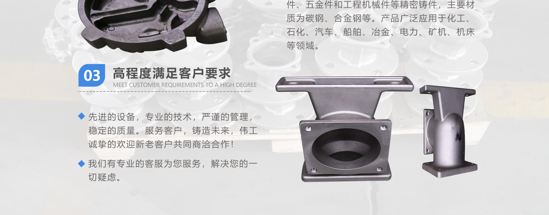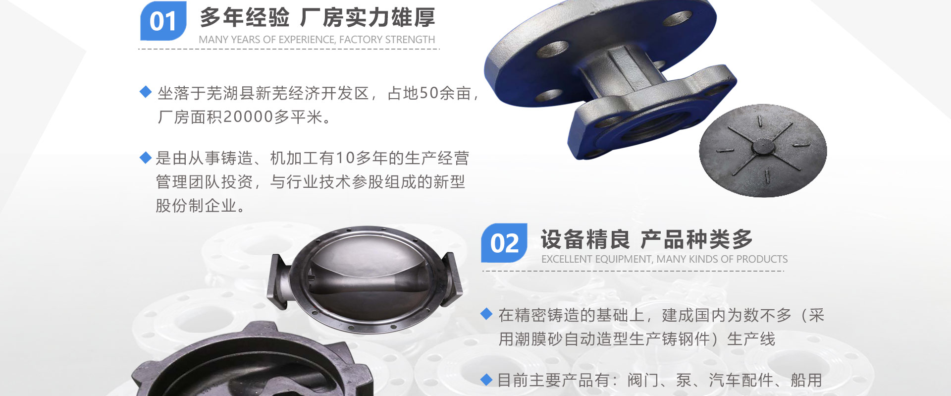 安徽偉工機械科技有限公司,坐落于安徽蕪湖新蕪經(jīng)濟開發(fā)區(qū),是一家専業(yè)從事鑄造產(chǎn)品設計、研發(fā)、生產(chǎn)、銷售于一體的企業(yè),公司為客戶的產(chǎn)品提供多樣的技術(shù)支持與設計,公司主要鑄造技術(shù)有潮模砂鑄造、硅溶膠精鑄工藝。主要產(chǎn)品有:不銹鋼閥門配件、泵閥配件、汽車配件、工業(yè)管道配件、工程機械配件、汽車配件等。材質(zhì)為:低合金鋼、304、316、316L、鉻鉬鋼、哈氏合金、碳鋼、雙相鋼等。公司已先后通過ISO9001和TS16949等多種體系審核,以完備的管理手段和齊全的檢測設備滿足客戶需求,進的設備,専業(yè)的技術(shù),嚴謹?shù)墓芾?,穩(wěn)定的質(zhì)量。服務客戶,鑄造未來,偉工誠摯的歡迎新老客戶共同商洽合作